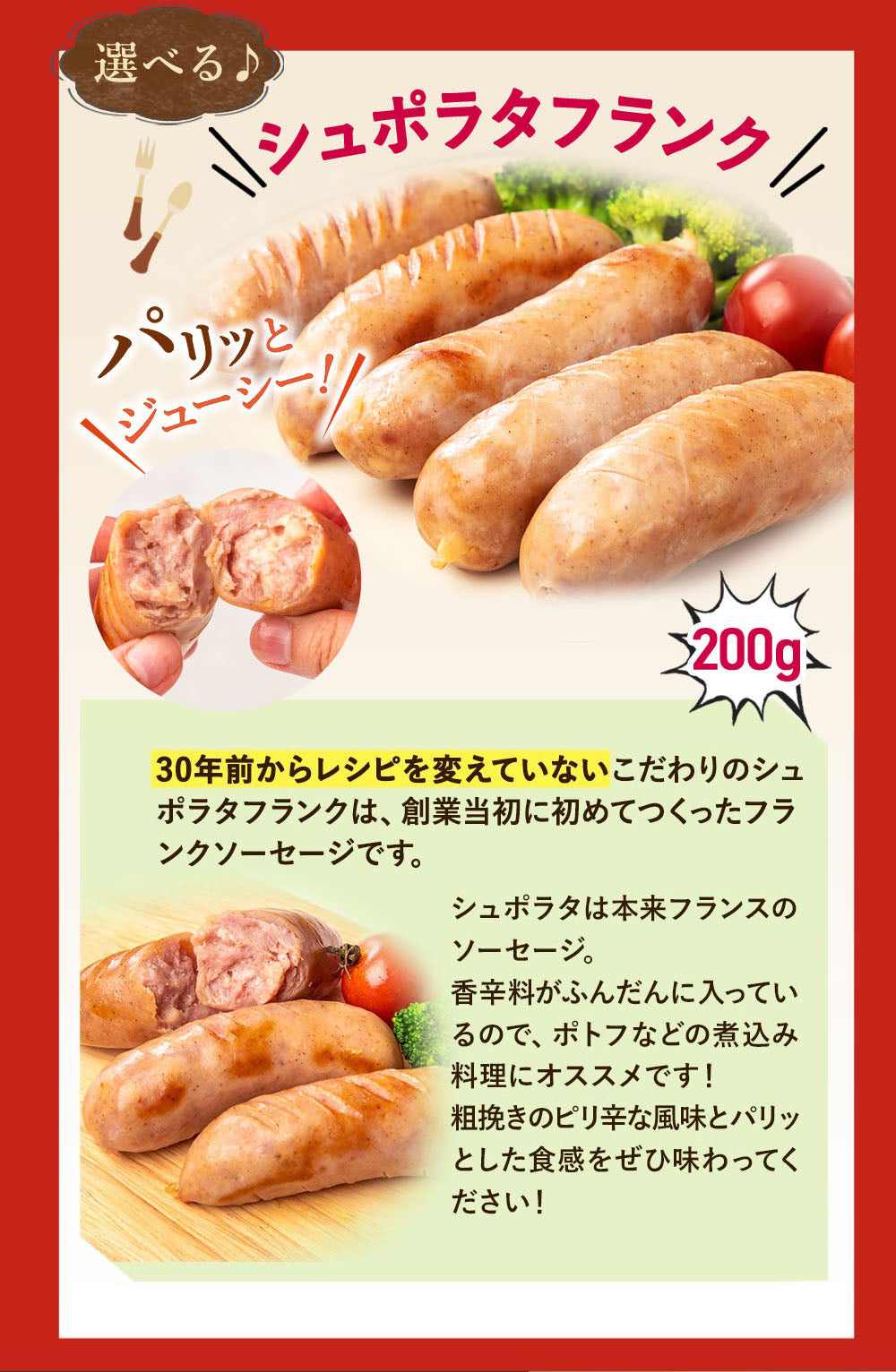 | 内容量 | ロースハム/ミニウィンナ―/チリフランク・ポークフランク・シュポラタフランクよりいずれか |